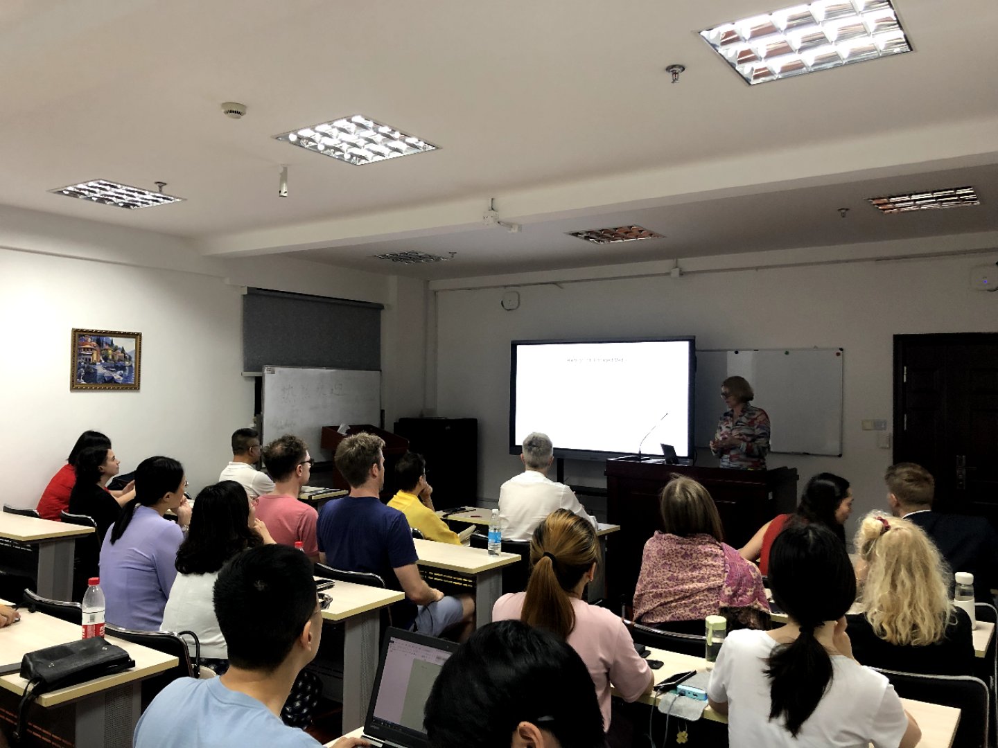 2019年6月5日晚,无码中文 青联会夏季讲座在文科楼举行,本次讲座由德国外教Sakine Weikert主持,主讲人Mechthild Schmidt Feist教授作了题为“上海光影地图”(Shanghai maps of light+shadow)的报告。