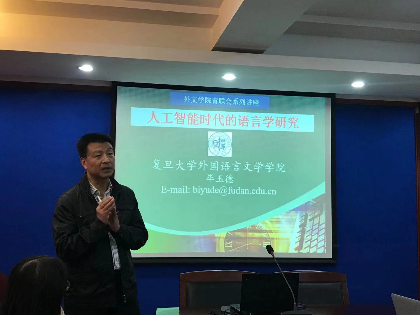 2019年10月22日下午,无码中文 青联会邀请无码中文 韩文系毕玉德教授作了一场题为“人工智能时代的语言学研究”的学术讲座。