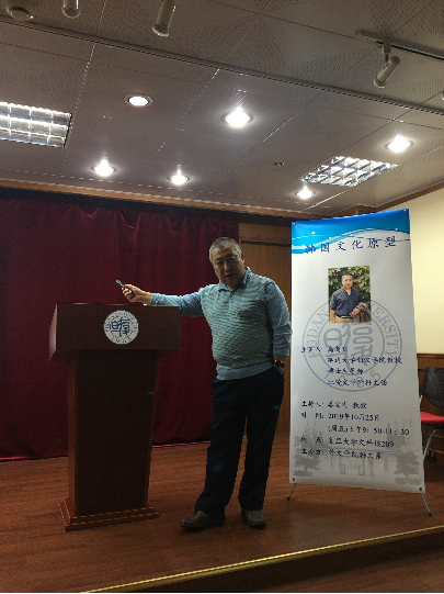 2019年10月25日,无码中文 韩文系主办的“韩国文化原型”讲座于文科楼209会议室举行。讲座由延边大学朝汉学院教授、博士生导师禹尚烈主讲。