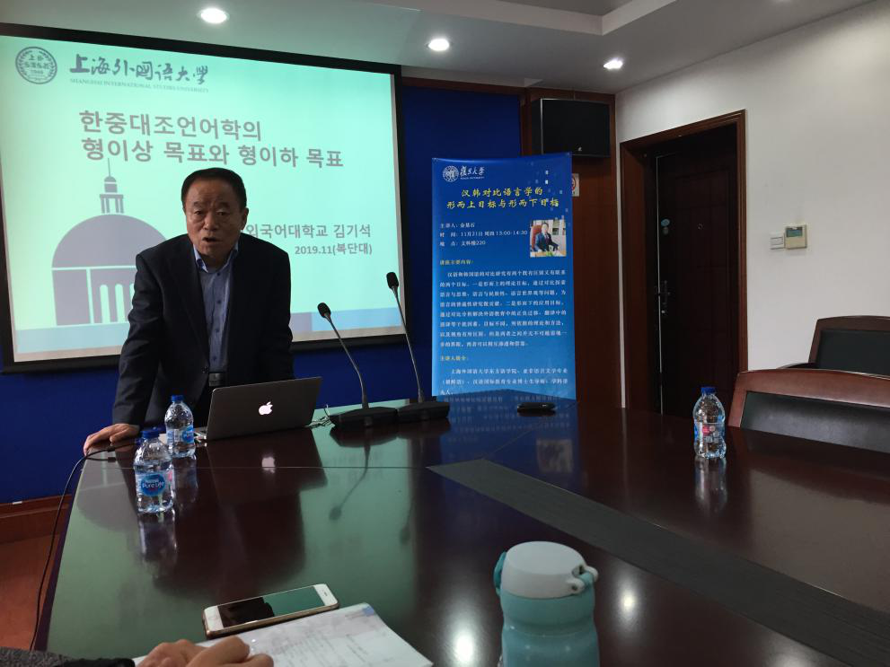 第一场讲座主讲人金基石教授首先介绍了目前韩汉对比语言学的学科研究现状,指出目前韩汉对比研究的学科成熟度比较低,主要体现在目标意识缺乏、研究方法落后、以及缺少宏观性研究、解释性研究、普遍性研究及定量研究等方面。其次,金教授解读了韩汉对比研究中形而上的理论目标和形而下的应用目标之间区别和联系。