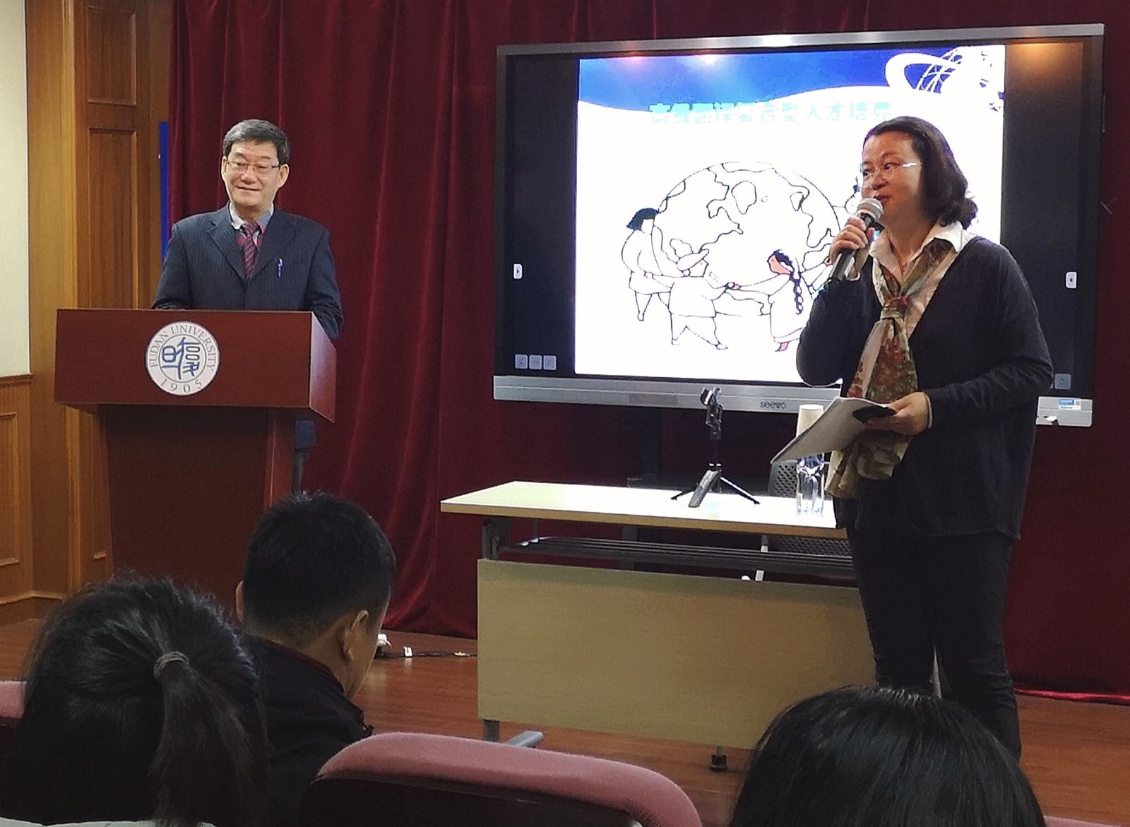 2019年11月26日上午,无码中文 法文系成功举办了“高级翻译培养与外语复合型人才教学”的主题讲座,主讲人为首都师范大学的李军教授。李教授曾为国家领导人、中非论坛、博鳌论坛、奥运会、世博会、中法文化年等重大活动和国际学术研讨会担任同传和交传,有着极为丰富的口笔译实践和教学经验。该讲座由复旦法文系主任袁莉老师主持。