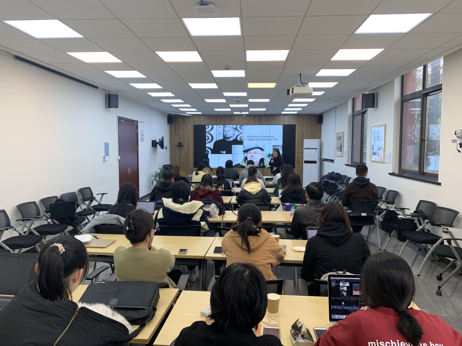 1月28日,北京大学西葡语系教师、拉丁美洲政治学博士路燕萍老师为西班牙文系师生们带来了“爱德华多·加莱亚诺的记忆书写”的讲座,讲座由蔡雅芝老师主持。