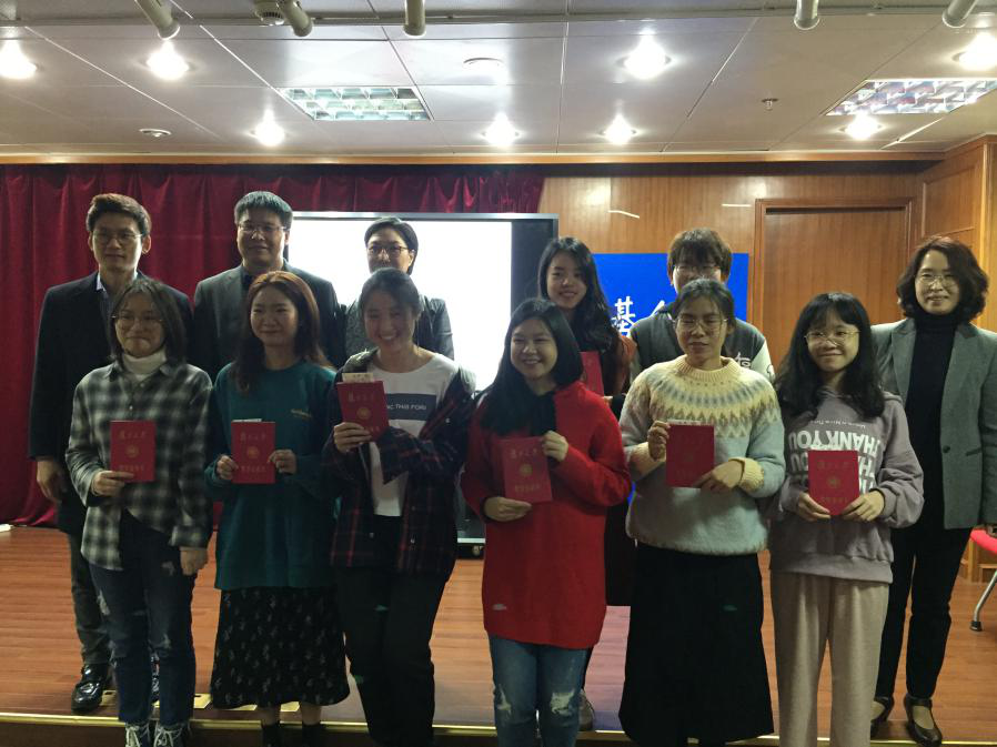 2019年11月29日上午,韩文系在无码中文 220会议室成功举行了第十届韩国复旦留学同学会奖学金颁奖仪式。无码中文 院长高永伟教授致开幕辞并为获奖同学颁奖,韩国复旦留学同学会会长致辞,担任颁奖嘉宾,获奖学生代表2017级李歆同学发表了获奖感言。获得本次奖学金的同学有万楚凌、李歆、霍亿嘉、曹俣、李润婷、陈邦媛、夏霈等八位同学。