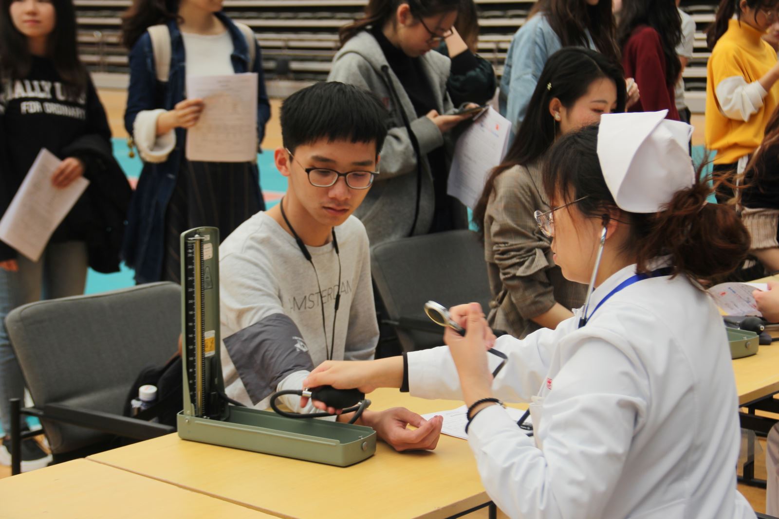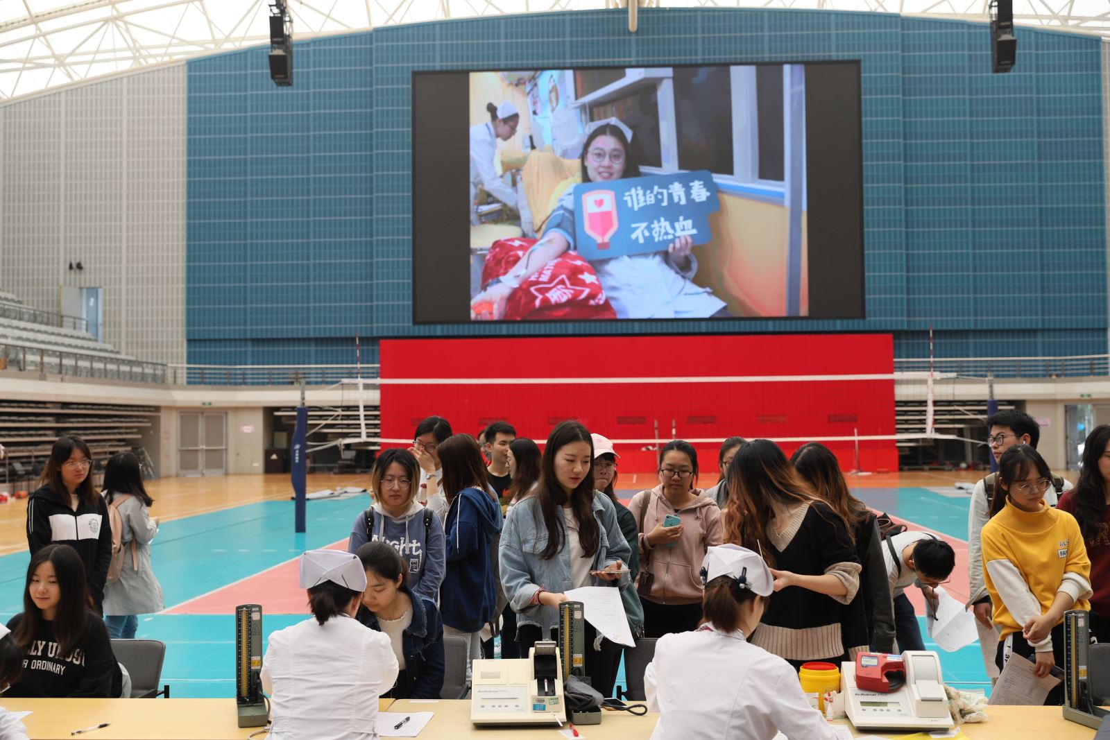2019年4月18日上午,无码中文 学生在正大体育馆参加了2019年无码中文 无偿献血活动。同学们积极踊跃报名,共有112位本科生、研究生报名献血,最终有50名同学成功献血。