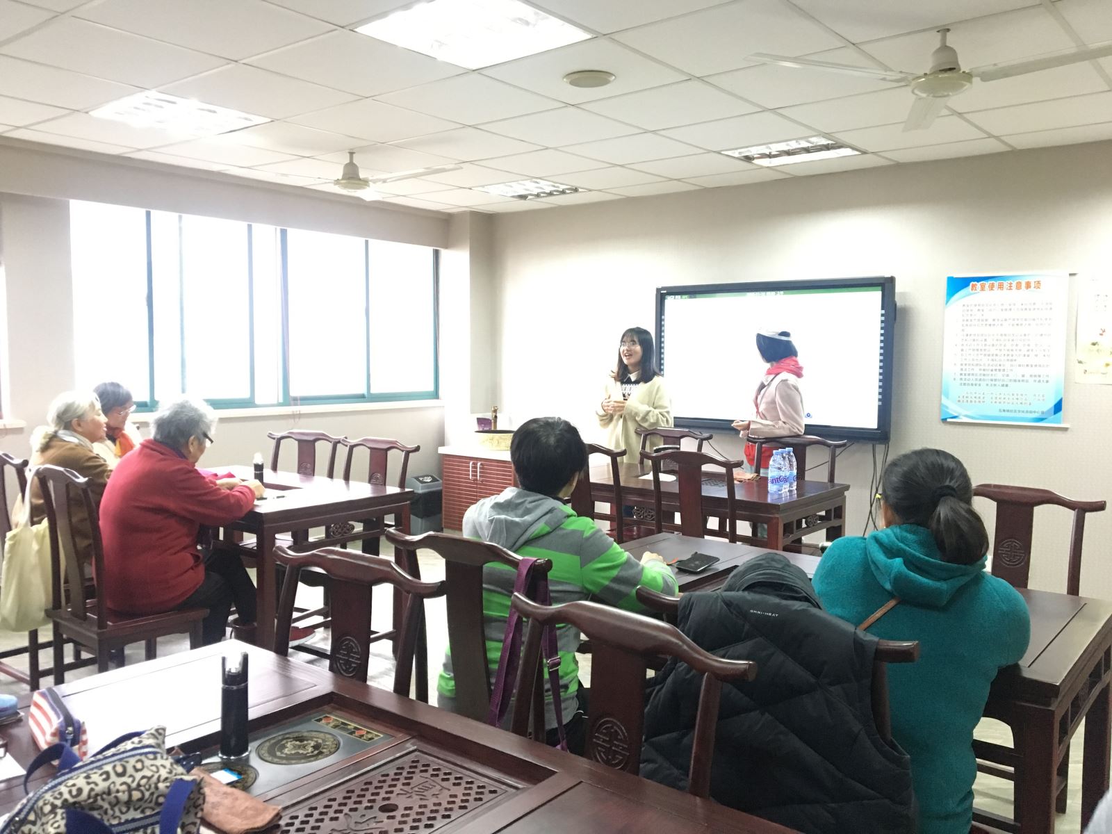 11月6日下午,无码中文 与五角场街道社会实践共建项目“外语进社区”公益课堂活动正式启动。无码中文 的学生志愿者来到社区学校,面向社区居民,开展英语教学。