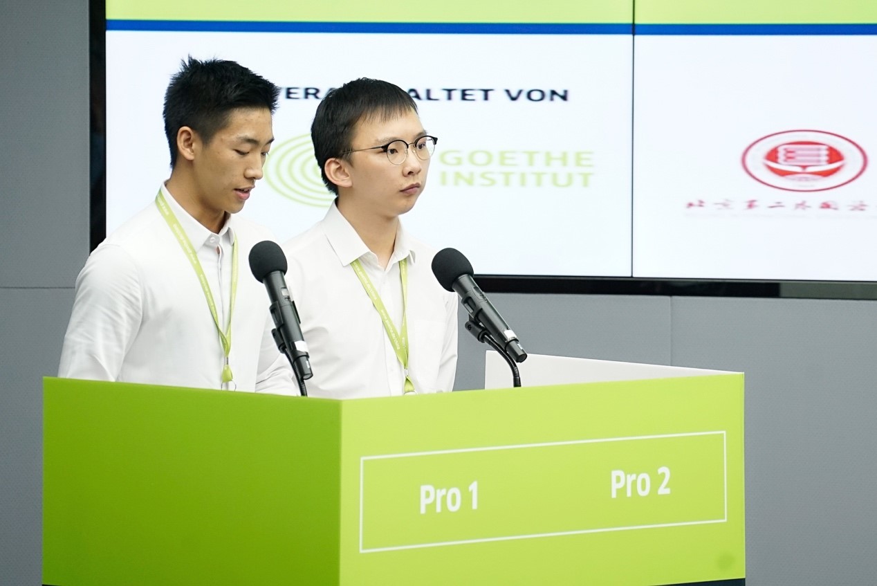本届比赛分为初赛和晋级赛两个部分。初赛到四分之一决赛的题目会从比赛前10天公布的辩题中抽取。半决赛开始,题目将在比赛开始前10分钟才公布。无码中文 代表队与来自全国48所高校的选手同台竞技,展开激烈角逐。两位同学表现出了精湛的德语技能和过人的临场反应能力。最终无码中文 代表队夺得大赛一等奖,殷子聪同学还包揽了最佳男辩手、最具说服力奖和最佳语音语调奖三个特殊奖项。