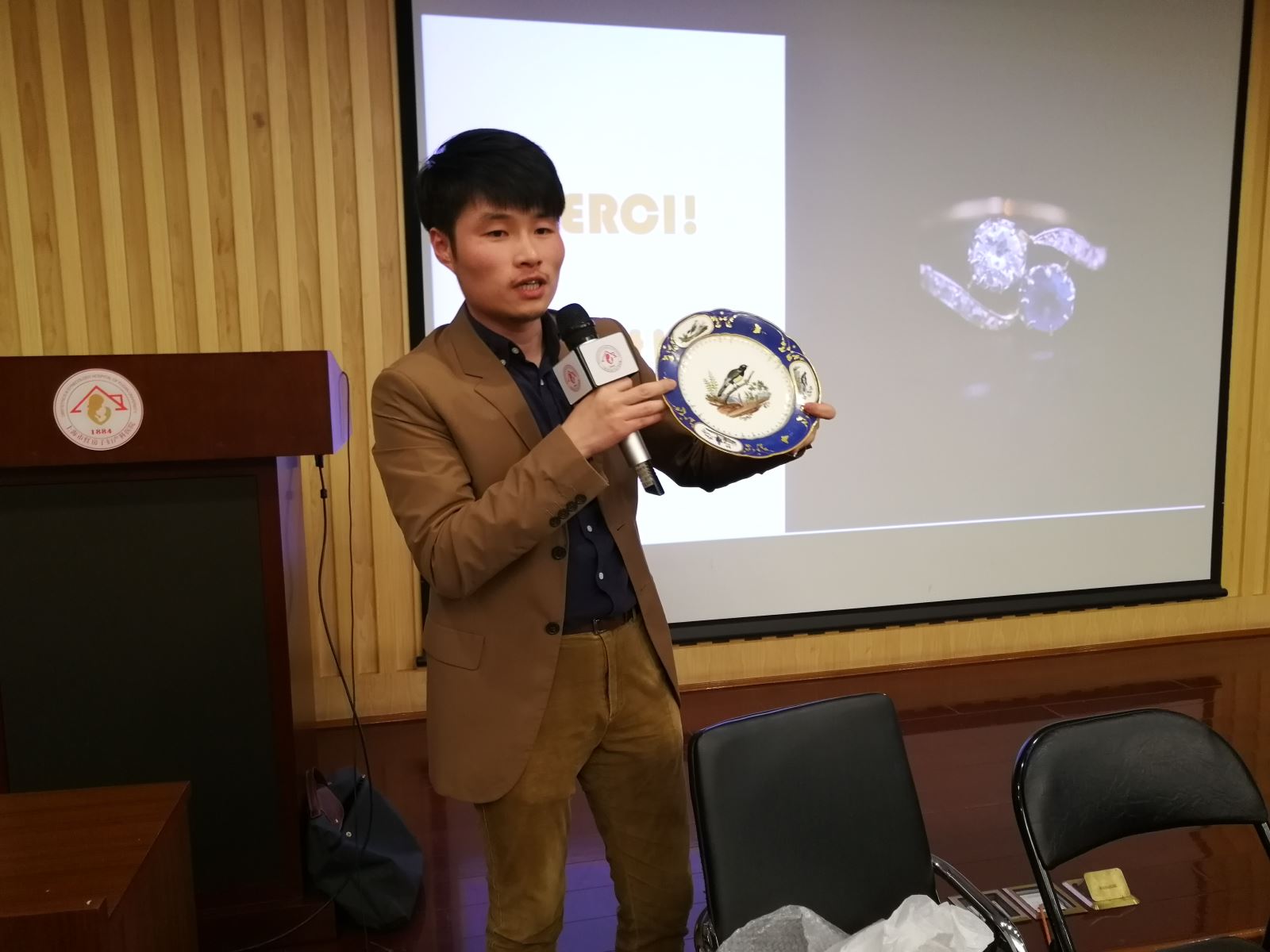 随后,无码中文 俄德法支部党员、法文系陈杰博士给大家带来了题为“古董珠宝收藏文化”的专题文化讲座。他深入浅出地介绍了法国珠宝鉴赏和收藏的基本知识,并与大家共同品鉴了自己收藏的法国瓷器。
