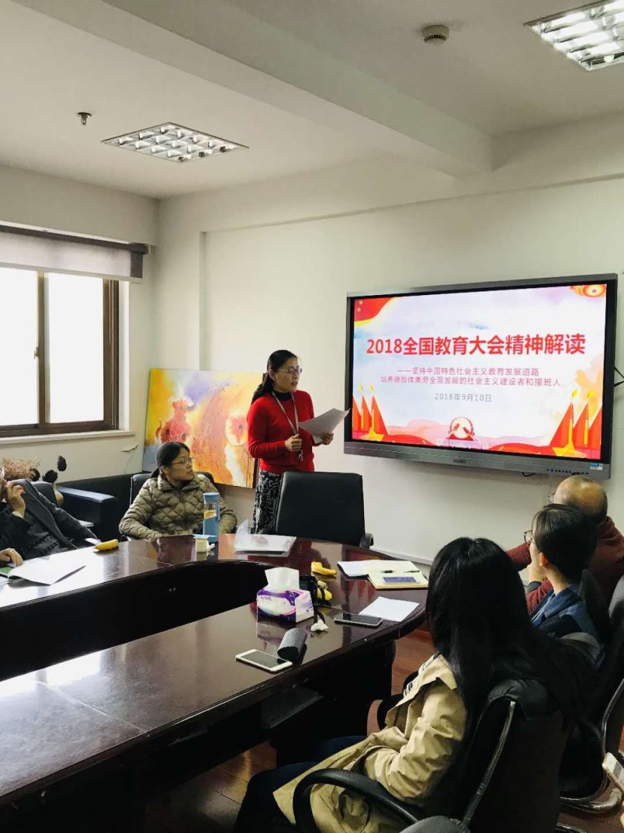 刘老师围绕习近平总书记在全国教育大会上的讲话,从教育的重要意义、教育改革的“九个坚持”、教育的目的以及如何提升教师队伍素质四个方面对讲话的精神进行了解读。在报告中刘老师讲到,全国教育大会将教育定位为“教育是国之大计、党之大计”,认为教育事业发展的关键在于教师,我们必须不断提升教师的政治和业务素质,用自身的人格魅力赢得社会的尊重。