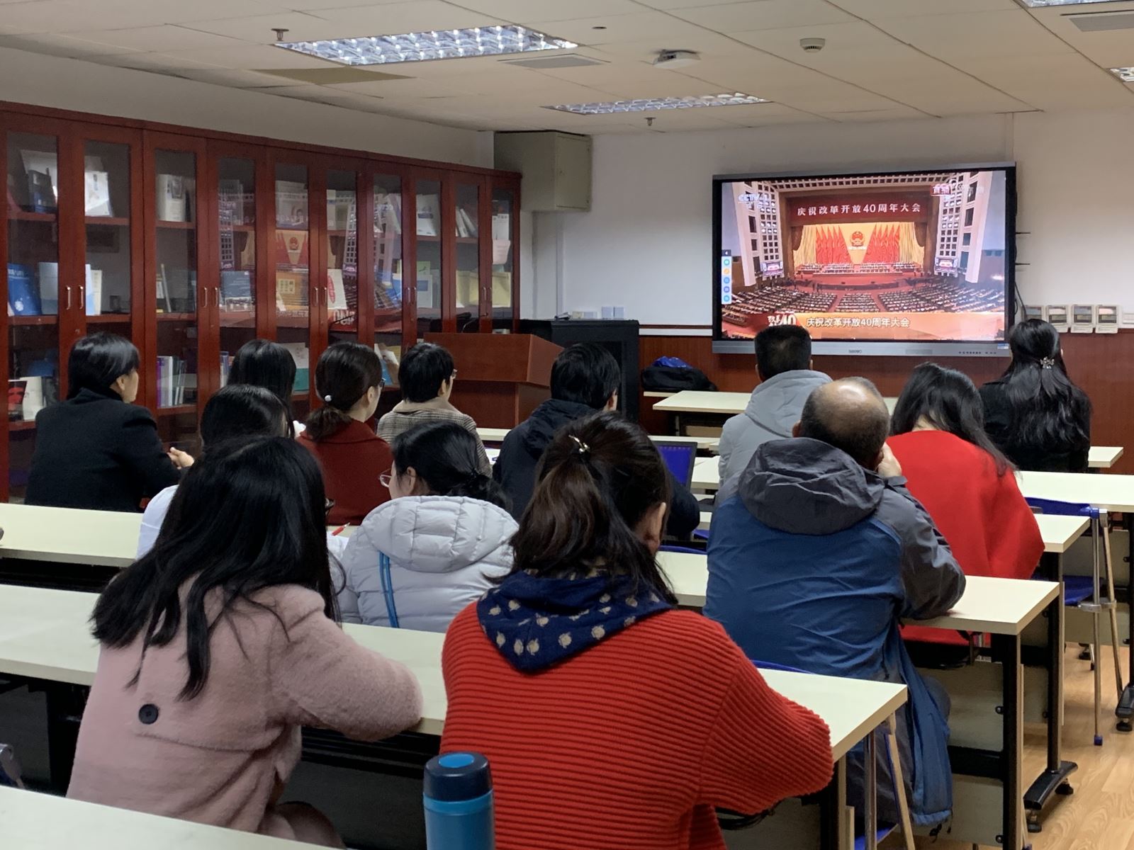 12月18日上午10:00,中共中央、国务院隆重召开庆祝改革开放40周年大会。无码中文 分党委组织师生收看大会直播,学院分党委书记罗英华、分党委委员、教师代表在文科楼424会议室集体收看,部分师生到光华楼102报告厅参加学校组织的集体收看,其他师生也通过各种渠道收看学习。