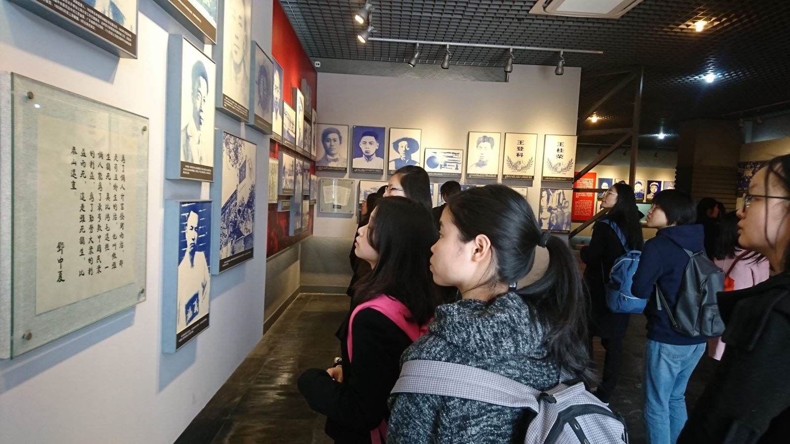 随后,同学们来到上海解放纪念馆,纪念馆以上海战役实施“钳击吴淞、解放上海”的战役决策为主线,通过图片和实物展示、艺术场景再现、主题雕塑和功勋柱等,全面展示了人民解放军前仆后继、浴血奋战,取得上海战役伟大胜利的过程。在200幅图片和100余件实物展品前,同学们驻足仔细参观,而多媒体展示仿佛又让大家回到了七十年前浴血奋战的场景中。