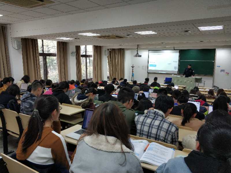 邀请上海市公安局文保分局沪东高校派出所潘阶警官对2018级本科生进行校园安全防范教育,旨在提高同学们在生活和学习中的安全防范意识,增强风险应对能力。