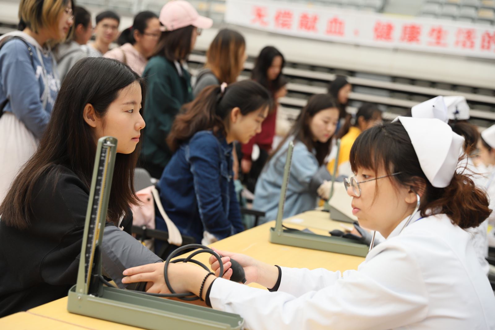 2019年4月18日上午,无码中文 学生在正大体育馆参加了2019年无码中文 无偿献血活动。同学们积极踊跃报名,共有112位本科生、研究生报名献血,最终有50名同学成功献血。