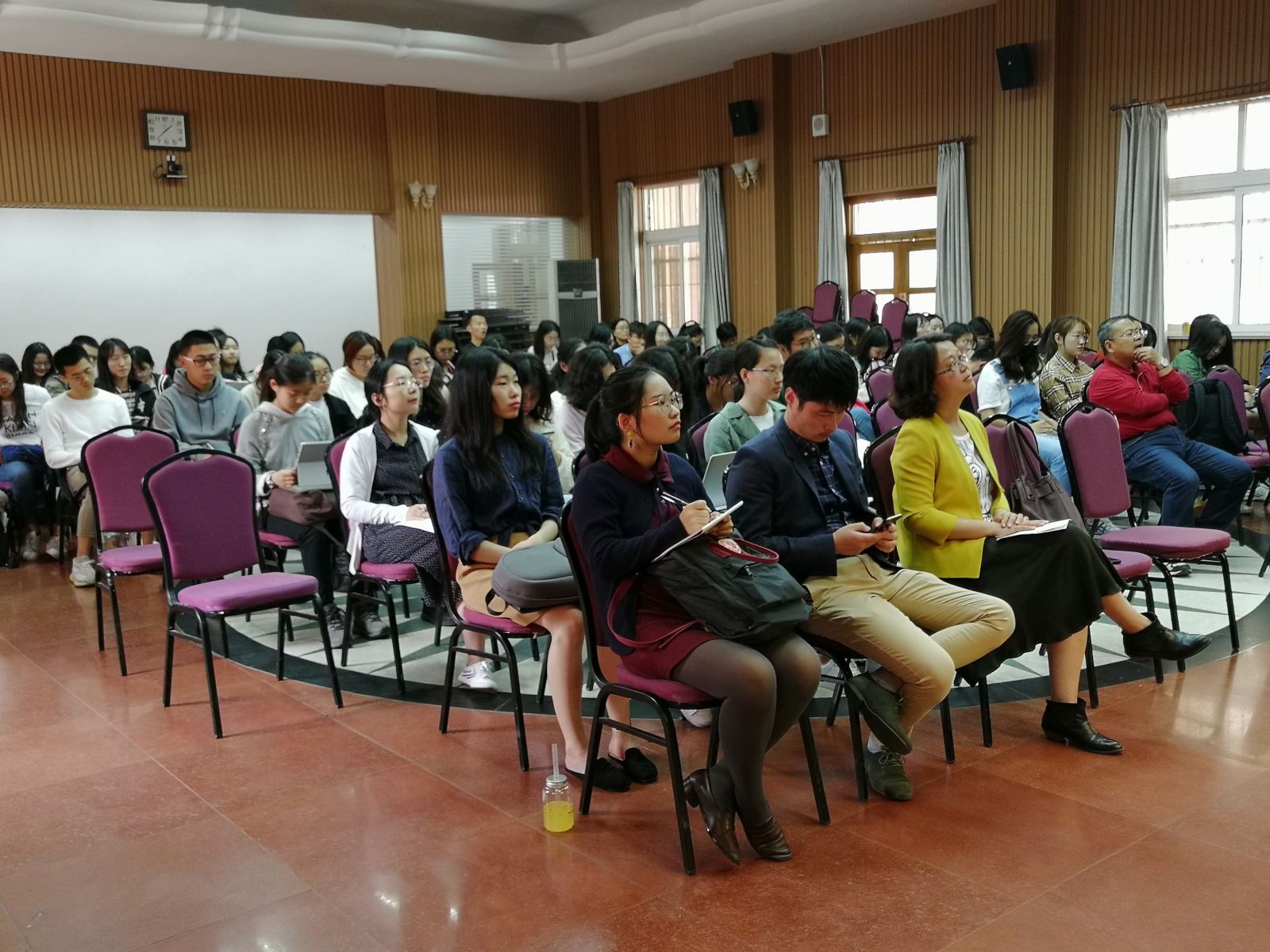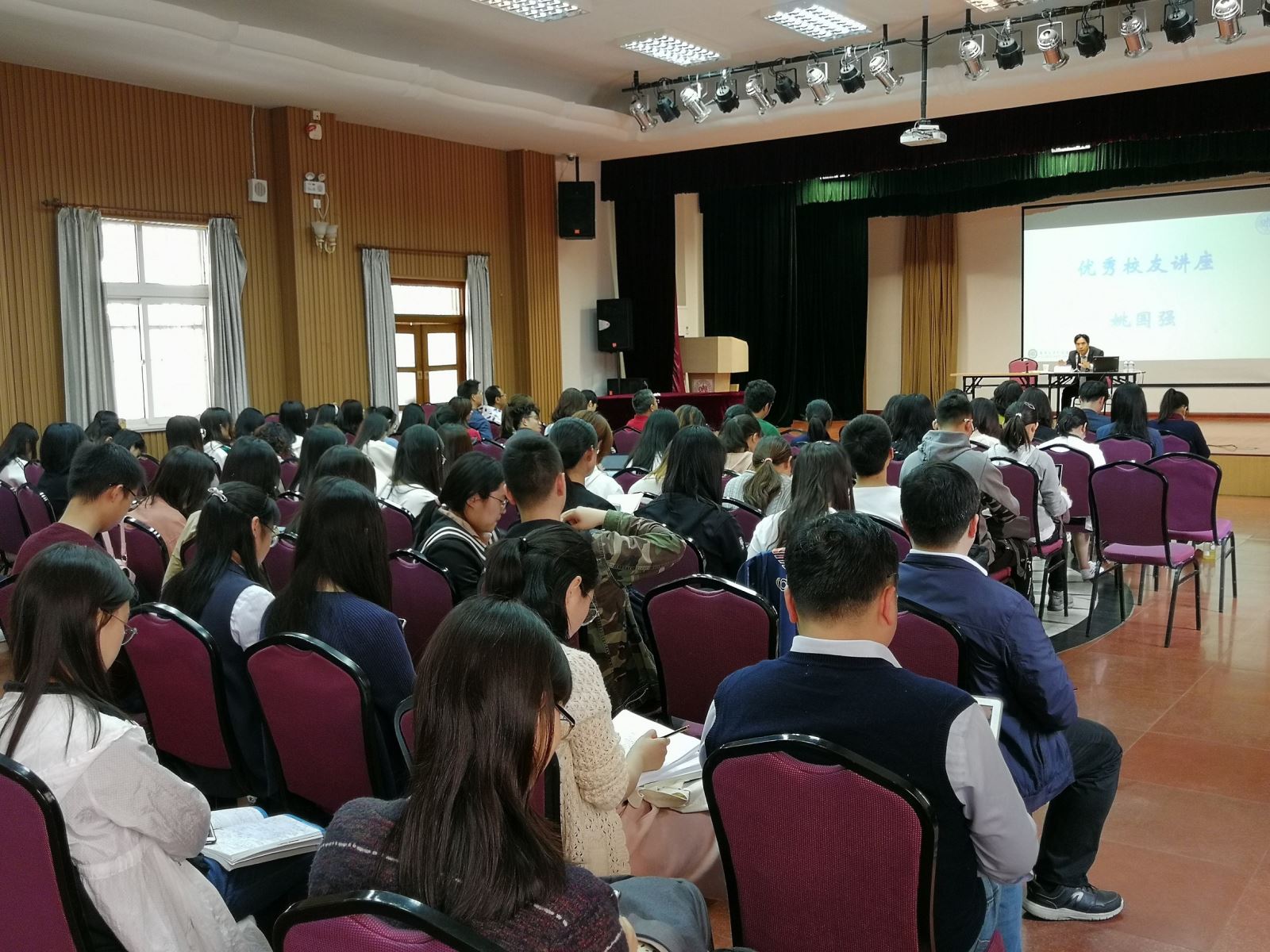5月14日下午,无码中文 分党委于工会礼堂举行第三期优秀校友讲坛暨第三期入党积极分子培训班、第二期党支部书记(骨干)培训班专题讲座。1977级法文系校友姚国强先生重返校园,为无码中文 师生作了题为《4年大学与40年精彩人生——探讨外语的可能性》的精彩讲座。讲座由法文系系主任袁莉主持,近百名师生参加讲座。