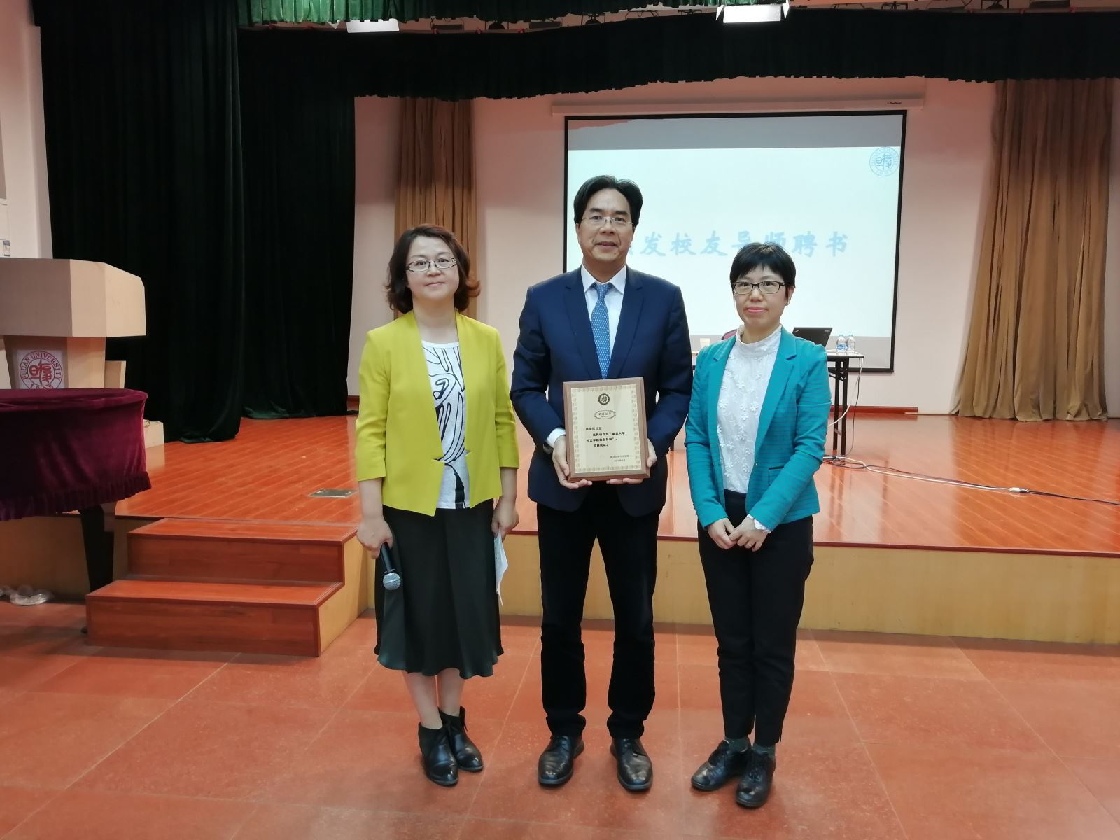 讲座前,分党委书记罗英华为姚国强校友颁发了校友导师聘书,感谢其对于学院育人工作的大力支持。