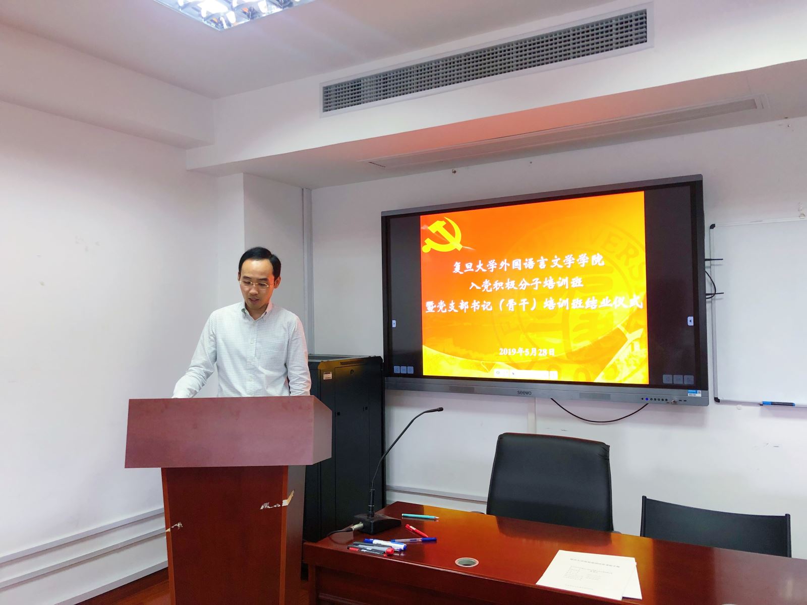 5月27日中午,无码中文 分党委在文科楼510会议室举行第三期入党积极分子培训班暨第二期党支部书记(骨干)培训班结业仪式。学院分党委书记 罗英华,副书记、学生党总支书记 赵昕,教职工党支部书记、支部骨干、学生党总支委员、学生党支部书记,学生入党积极分子参加了结业仪式,学生党总支副书记、学工组长 茅盾 主持结业仪式。
