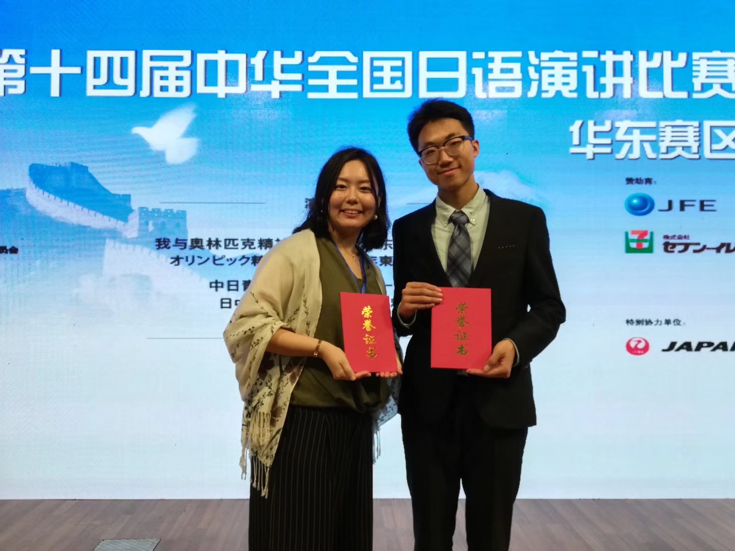 5月18日,三年级孔繁凌同学在第十届中华全国日语演讲比赛(华东赛区)中荣获二等奖,丹波江里佳老师获得优秀指导老师奖。本次有来自江浙沪共31所高校的学生参赛,孔繁凌同学不畏强手,台风稳健,在主题演讲和即席演讲中表现出色,获得评委的好评。