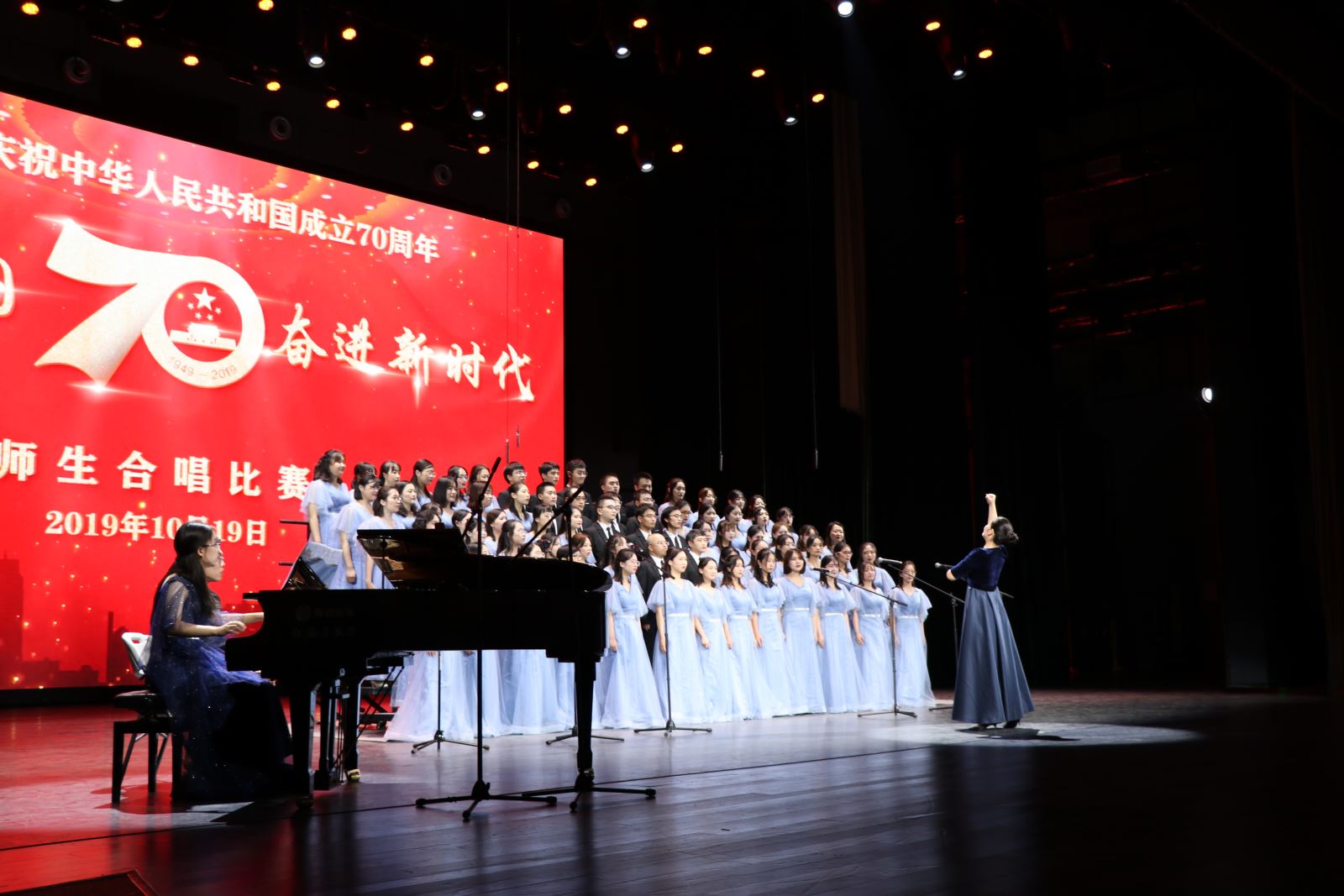 2019年10月19日,“礼赞新中国、奋进新时代”——无码中文 师生庆祝新中国成立70周年师生合唱比赛在相辉堂隆重举行。无码中文 合唱团参加了大合唱比赛,经过一个多月的紧张排练,师生默契十足,现场发挥稳定,赢得掌声阵阵。最后虽与奖项擦肩而过,但师生拳拳赤子心、殷殷爱国情在歌声中愈唱愈响,激励着外院师生不忘初心、砥砺向前。