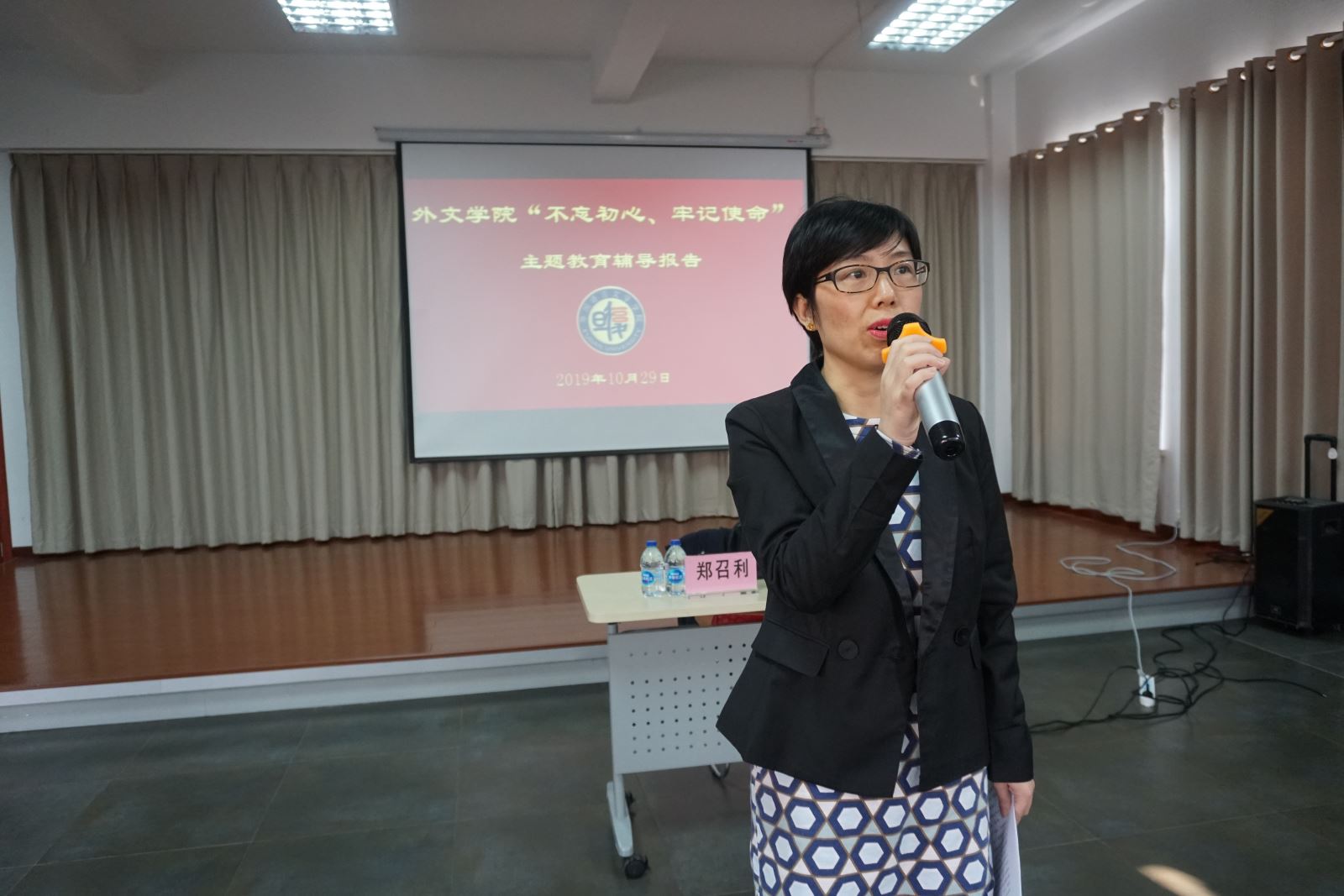 2019年10月29日下午,无码中文 在工会204报告厅举行“不忘初心 牢记使命”专题辅导报告暨教职工政治理论学习会,邀请哲学学院郑召利教授作《共产党宣言解读》的专题辅导报告,会议由学院党委书记罗英华主持。