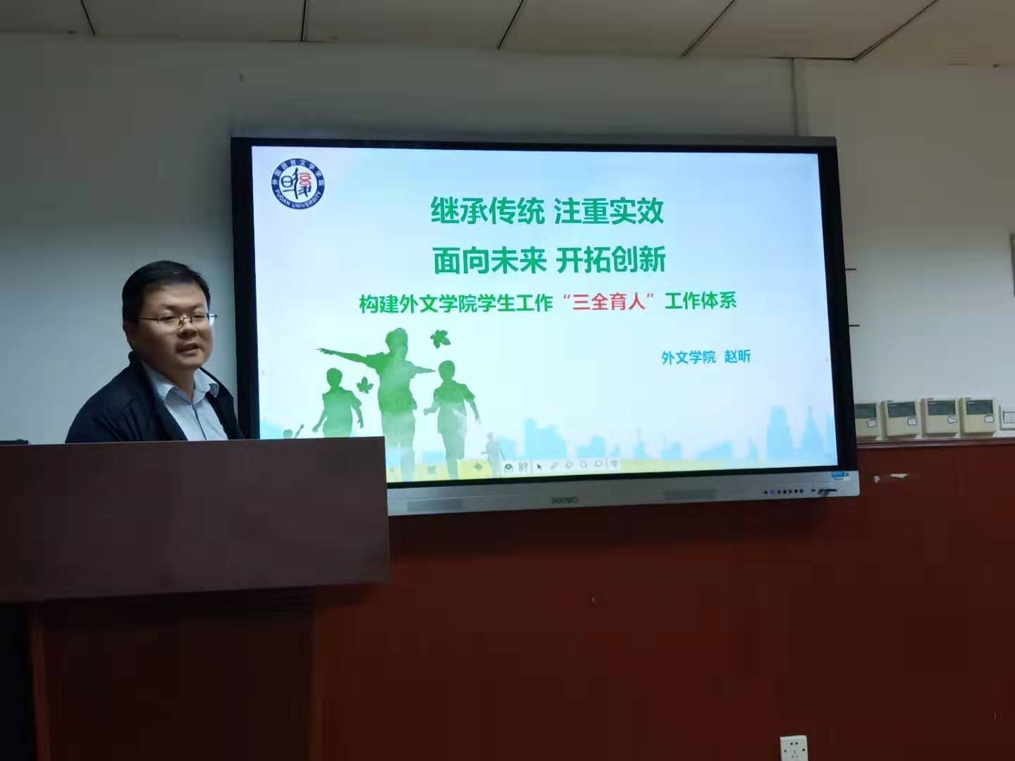 赵昕做了《继承传统,注重实效,面向未来,开拓创新——构建无码中文 学生工作“三全育人”工作体系》的汇报,他表示,要围绕立德树人根本任务,以队伍建设为基础、以学生党建为引领、以实践育人为抓手、以创新发展为驱动,统筹各方育人资源力量,激发全员育人主体活力,将思政工作贯通育人全过程,全方位覆盖育人空间场域,突出问题导向和改革创新,深入推进“三全育人”。