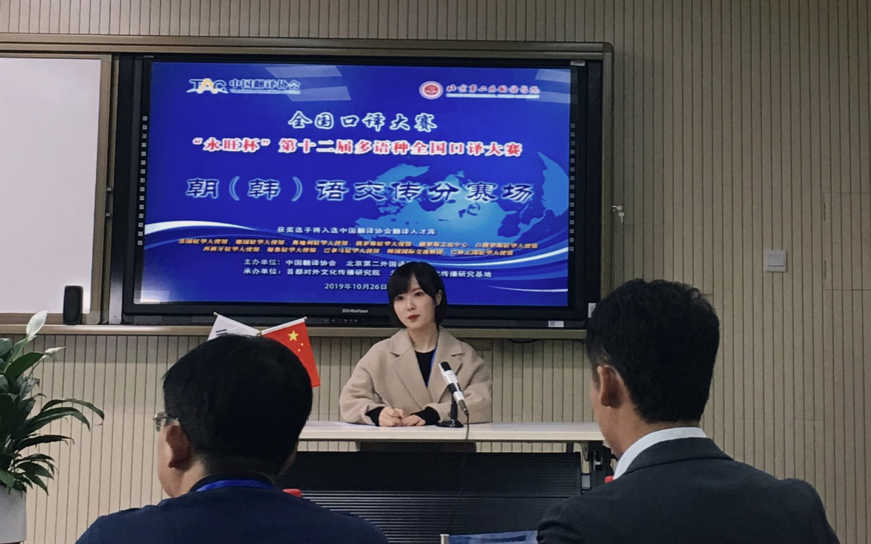 由中国翻译协会、北京第二外国语学院共同主办的“全国口译大赛——‘永旺杯’第十二届多语种全国口译大赛” 复赛及决赛于2019年10月26日在北京第二外国语学院成功举办。来自全国各地高校的参赛选手经过初赛选拔,最终来自全国46所高校的107名选手脱颖而出进入复赛,展开激烈的角逐。