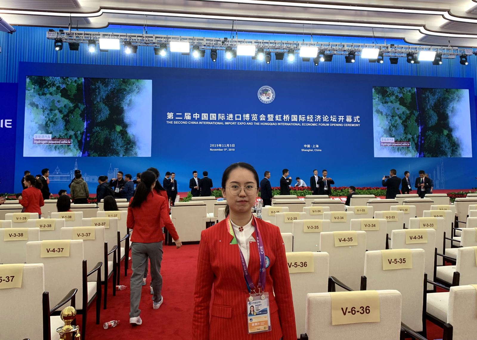 很荣幸能够作为开幕式的志愿者参加本次进博会。我最深刻的感受是做志愿者,即便是进博会这样高规格的活动,并不一定需要多么所谓“硬核”的技能,更重要的是持久的毅力、一丝不苟的态度和随机应变的灵活性。三点不到的起床时间、嘉宾千奇百怪的问题和要求、突如其来的新增岗位,这些都是身为志愿者实际面临的挑战,它们也锻炼了我的意志力和应变能力,这是我仅凭课堂学习收获不到的体验与成长。