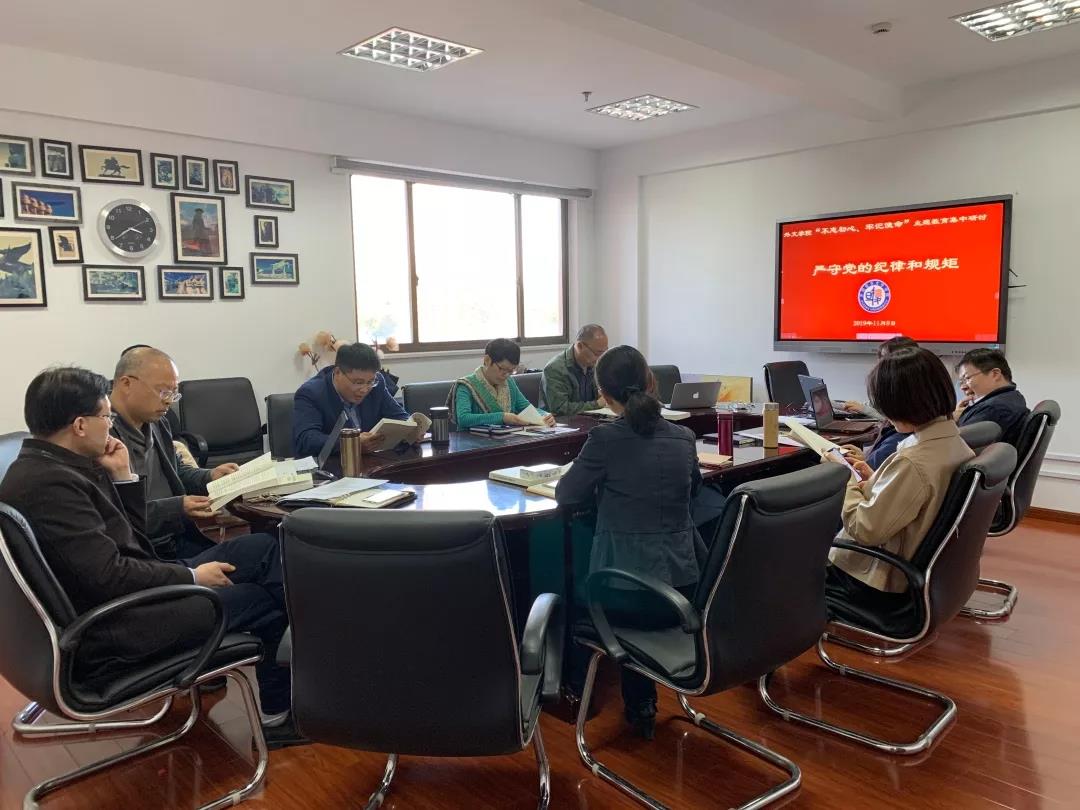 党委举行“不忘初心、牢记使命”主题教育第六次集中学习研讨。党委书记罗英华主持学习,学院党政领导班子聚焦党的政治纪律和政治规矩,重点学习党章、《关于新形势下党内政治生活的若干准则》、《中国共产党纪律处分条例》,掌握党内法规的基本要求,围绕严格遵守党的纪律和规矩,始终保持党的先进性和纯洁性开展研讨交流。罗英华表示,严肃党内政治生活是全面从严治党的基础。作为高校党员干部,一要强化纪律规矩意识,从思想入手,保持坚定的理想信念和纯洁的党性修养,以思想自觉引领言行自觉;二是要守好廉洁自律底线,知行合一言行一致,做到“五个必须”,按照规矩办事;三是要勇于攻坚克难担当作为,在守纪律、讲规矩的要求下扎实工作、主动作为,推动解决问题、克服难题、服务群众,为学院事业发展提供坚强政治保证。 高永伟表示,新形势下,全面从严治党非常必要。不仅能提高党的凝聚力和战斗力,而且也能使广大党员更好地贯彻群众路线,不断加深与群众的联系。作为党员,一定要理论联系实际,牢固树立四个意识,严以律己,做事要实,乐于奉献,勇于开展批评和自我批评。高校中的党员干部更应该坚持全心全意为人民服务的根本宗旨,继承党的优良传统和作风,自觉培养高尚道德情操,努力弘扬中华民族传统美德,廉洁自律,接受广大师生的监督。只有这样才能永葆党的先进性和纯洁性。朱建新表示,通过学习自己再次意识到了严以律己,严守党的政治纪律和政治规矩重要性。政治纪律是不可逾越的“雷区”, 遵守党的政治纪律和政治规矩是党员的基本义务。严明政治纪律不能停留在口头上,必须落实到行动中,做到履职尽责,勇于政治担当。守纪律、讲规矩的目的就是每个党员干部自觉把党纪党规内化于心、外化于行,以更加优良的作风,干好本职工作。在今后的学习中要不断提升自己的政治素养,不断强化自己的纪律观念,在工作中努力做到尊重领导和同事,襟怀坦白、光明磊落,坚守正道、弘扬正气,把遵守党纪化为自觉行动。郑咏滟表示,习近平总书记指出,“办好中国的事情,关键在党”,党的执政地位和肩负的历史使命,要求我们治国必先治党,治党务必从严。党要管党、从严治党,这是我国推进“四个全面”建设的重要组成部分。全面从严治党,既是我们党的优良传统和宝贵经验,也是我们党的一贯方针,更是现在我们在百年未有之大变局的新时代能够奋勇向前的根本。作为党员领导干部要深刻体会建设中国特色社会主义大学,党的全面领导是根本保证,立德树人是根本任务。作为党员干部,要把习近平总书记的要求落到实处,就必须从“我”做起,坚定理想信念、遵守政治纪律、提升能力素质、端正工作作风,在工作中充分发挥共产党人的先锋模范作用,踏踏实实做到为人民服务。曾建彬表示,通过逐条学习《中国共产党党内政治生活若干准则》原文,深刻领会到坚持全面从严治党廉洁自律的重要性。不忘初心,就是要对党忠诚。做到对党不利的事不做,对党不利的话不说,对党不利的谣言不信。做到在重大政治原则问题上、大是大非问题上时刻与以习近平同志为核心的党中央保持一致。切实遵守政治纪律、工作纪律、组织纪律、生活纪律,在关键时刻、重要关头,始终保持政治定力、守住法纪底线。在生活中严格自律,扎实工作,自觉接受党内和群众的监督。在工作中严格“按规则、按程序、按制度”办事,推动学院落实党风廉政建设责任制各项工作,确保各项工作按章办事,规范管理。严格执行学院“三重一大”民主决策制度,落实领导干部廉政自律各项规定,自觉做联系学校和学院党政领导和广大教职工的桥梁和纽带,稳定教学科研和管理服务秩序,积极维护集体的良好形象,当好领导的助手,为学院的改革发展大局营造风清气正的工作环境。赵昕表示,提高党的建设质量,必须聚焦全面从严治党,坚持和加强党对学校工作的全面领导,加强基层党组织政治功能和组织力,始终保持党的先进性和纯洁性;必须深入分析和准确把握加强党的建设的特点和规律,把全面从严治党转化为推动学院工作和事业发展的思路和举措。要坚定理想信念,有心中有信仰,脚下才会有力量;要严守政治纪律,在重大原则问题和大是大非面前,必须做到立场坚定;要树立系统思维和整体观念,切实把党的领导落实到工作的各领域各方面各环节;要增强马克思主义方法论自觉,自觉地坚持和运用辩证唯物主义世界观和方法论、辩证唯物主义和历史唯物主义的世界观和方法论解决实际问题。通过推动党的建设全面进步、全面过硬来推进我们的事业不断发展进步。