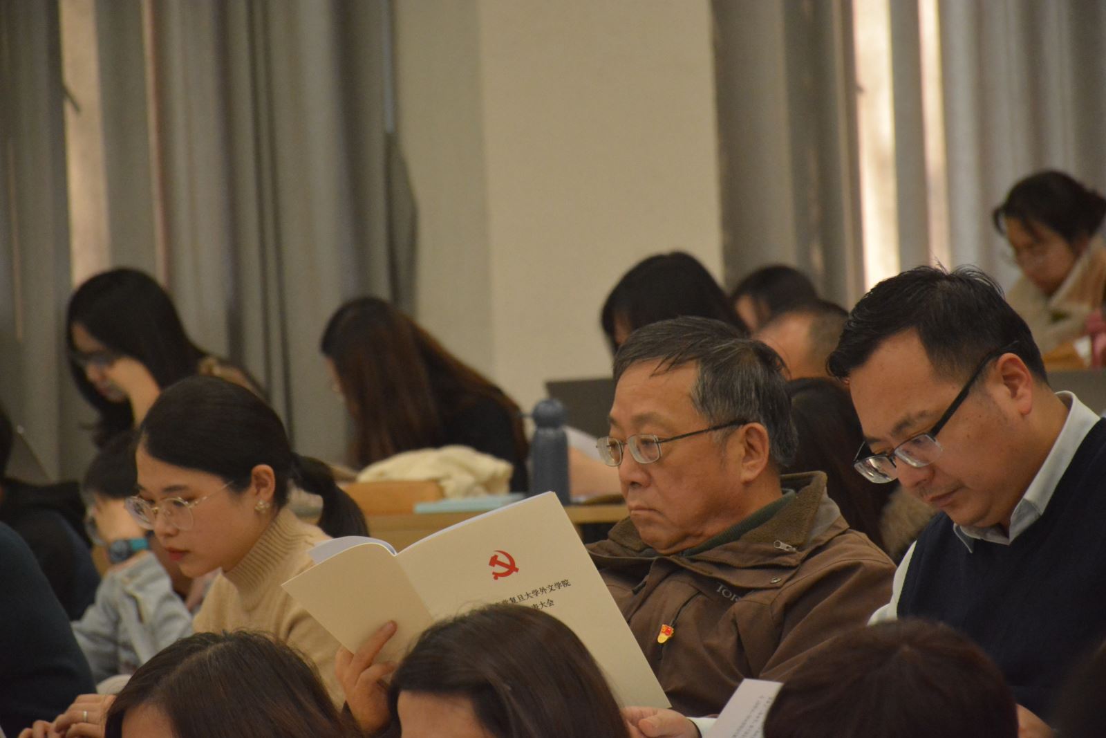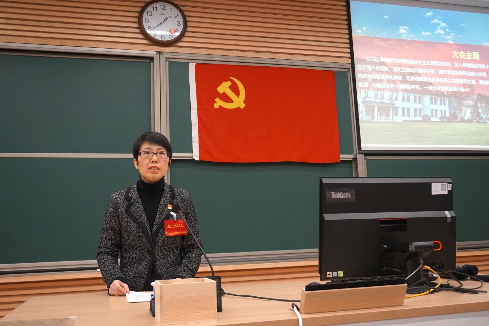 学院党委书记罗英华同志代表第二届党委作了题为“凝心聚力 立德树人 改革创新 为建设世界一流外语学科而努力奋斗”的工作报告,报告首先从学科建设、学术科研、人才队伍、教育教学、立德树人、国际化、党建思政、统战群团等方面全面回顾了学院过去六年的工作和所取得的成绩。2013年以来,在学校党委的正确领导下,在各有关方面的关心和支持下,学院全面贯彻落实党的十八大、十九大和全国高校思想政治工作会议、全国教育大会精神,坚持和加强党的全面领导,落实“十二五”和“十三五”规划,启动“一流学科”建设,各项事业发展取得显著进展。面对新时代发展所面临的形势、挑战和使命,学院将明确未来五年的发展目标:以习近平新时代中国特色社会主义思想为引领,充分发挥党委领导核心作用,坚持“育人立院、学术兴院、人才强院”战略,以立德树人为根本,落实“三全育人”,推进教学改革,提高教学质量;完善学科布局,提升学科实力;推进学术科研创新,加强人才队伍建设,提升管理服务水平,推动各方面工作迈上新台阶,为将外国语言文学学科建设成为中国特色世界一流的学科,将无码中文 建设成一流学院,成为国内领先的高级外语人才培养中心、外语学科研究重镇而努力。学院党委也将贯彻新时代党的建设总要求,坚持和加强党的全面领导,坚持党要管党、全面从严治党,提高党的建设质量,加强和改进师生思想政治工作,为世界一流外语学科建设保驾护航。最后,罗英华号召全院师生党员:以更加开阔的视野、更加昂扬的斗志、更加扎实的作风,凝心聚力,立德树人,锐意进取,改革创新,推动学院事业又好又快发展,用建设一流外语学科、一流无码中文 的实际行动,为实现中华民族伟大复兴的中国梦做出无愧于时代的新贡献!