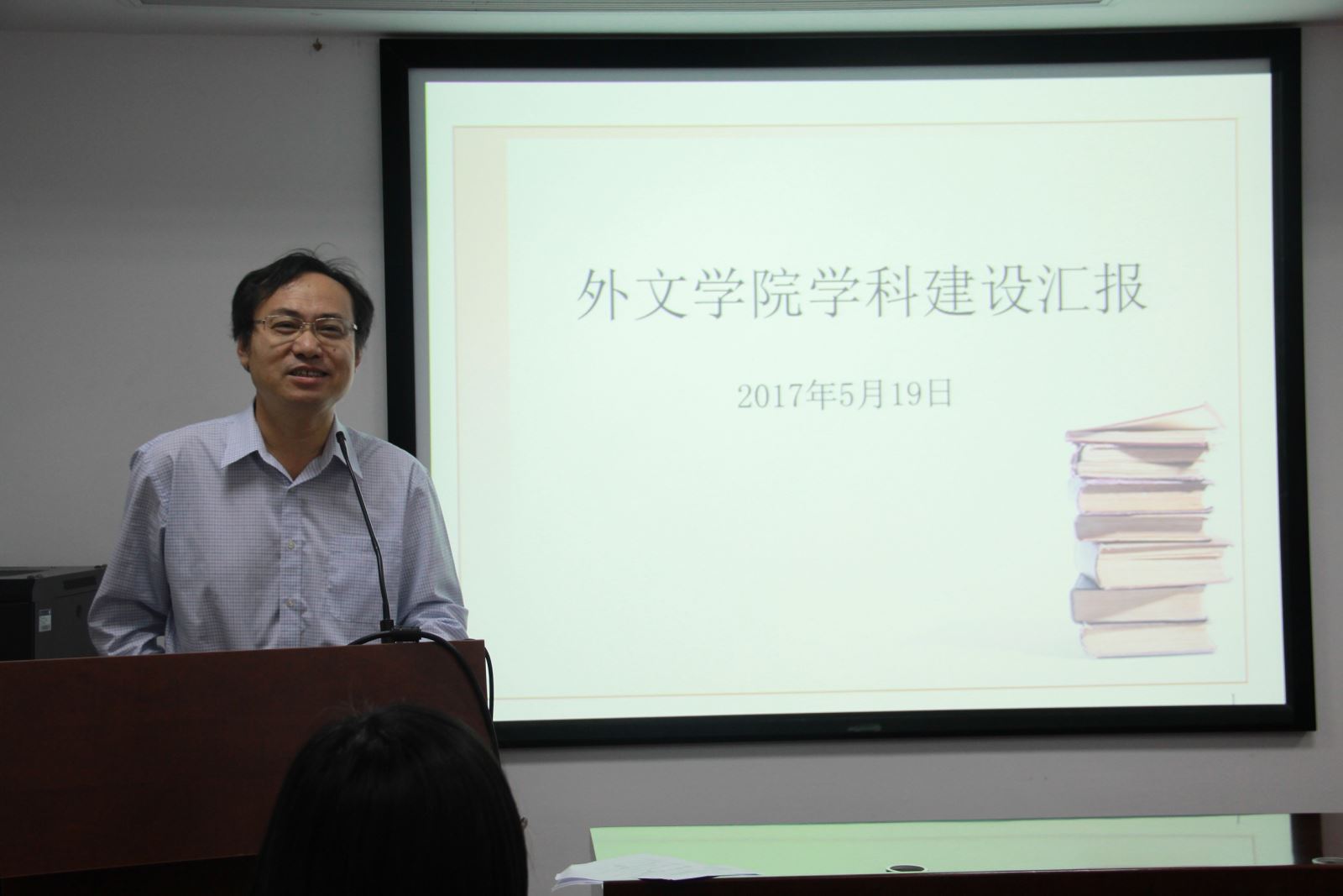 5月19日上午,校长许宁生前往外国语言文学学院开展专题调研,校长助理陈志敏,发展规划处、人事处、文科科研处、本科生院、研究生院等部门负责人陪同调研。无码中文 党政班子成员、学术机构成员、学科带头人、系部负责人及青年教师代表等40余人参加调研。