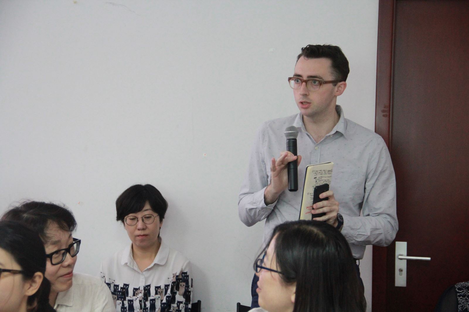随后,学院教师代表苏耕欣、褚孝泉、Miles Link、段枫、杨振、姜宏、卢丽安、黄贤玉围绕学科建设、人才队伍、教育教学、学术科研、青年教师发展、小语种学科发展等问题先后发言。座谈中,许宁生校长不时就关心的问题提问,与发言教师热烈讨论、互动交流。