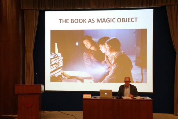 开幕式上,无码中文 副院长卢丽安老师,上海外国语大学研究生院副院长张绍铎老师、浙江大学外国语言文化与国际交流学院院长程工老师分别致辞,表达了对此次博士生学术论坛交流活动的支持与期待。随后,来自格拉斯哥大学的Vassiliki Kolocotroni教授和Robert Maslen教授分别作了题为The “Perpetual Immortality” of Language: Joyce and World Peace与The Book as Fantastic Subject的主题讲座,同学们纷纷表示受益颇多。