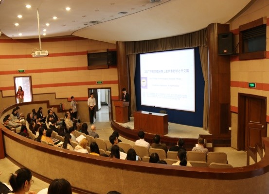 本次论坛共设两个分会场,其中文学一场,语言学和翻译学一场。在讨论过程中,获奖学生就优秀论文展开阐述,随后由点评教师分别进行现场点评。坦诚且富有深度的学术讨论提升了同学们对所在学科的研究对象与方法的认识。在交流环节,同学们就彼此的论文选题与研究思路展开了进一步讨论,碰撞思想、交流灵感。