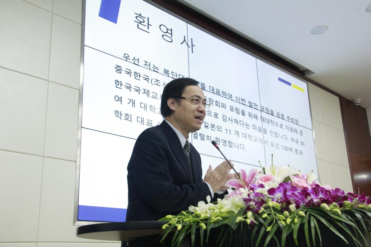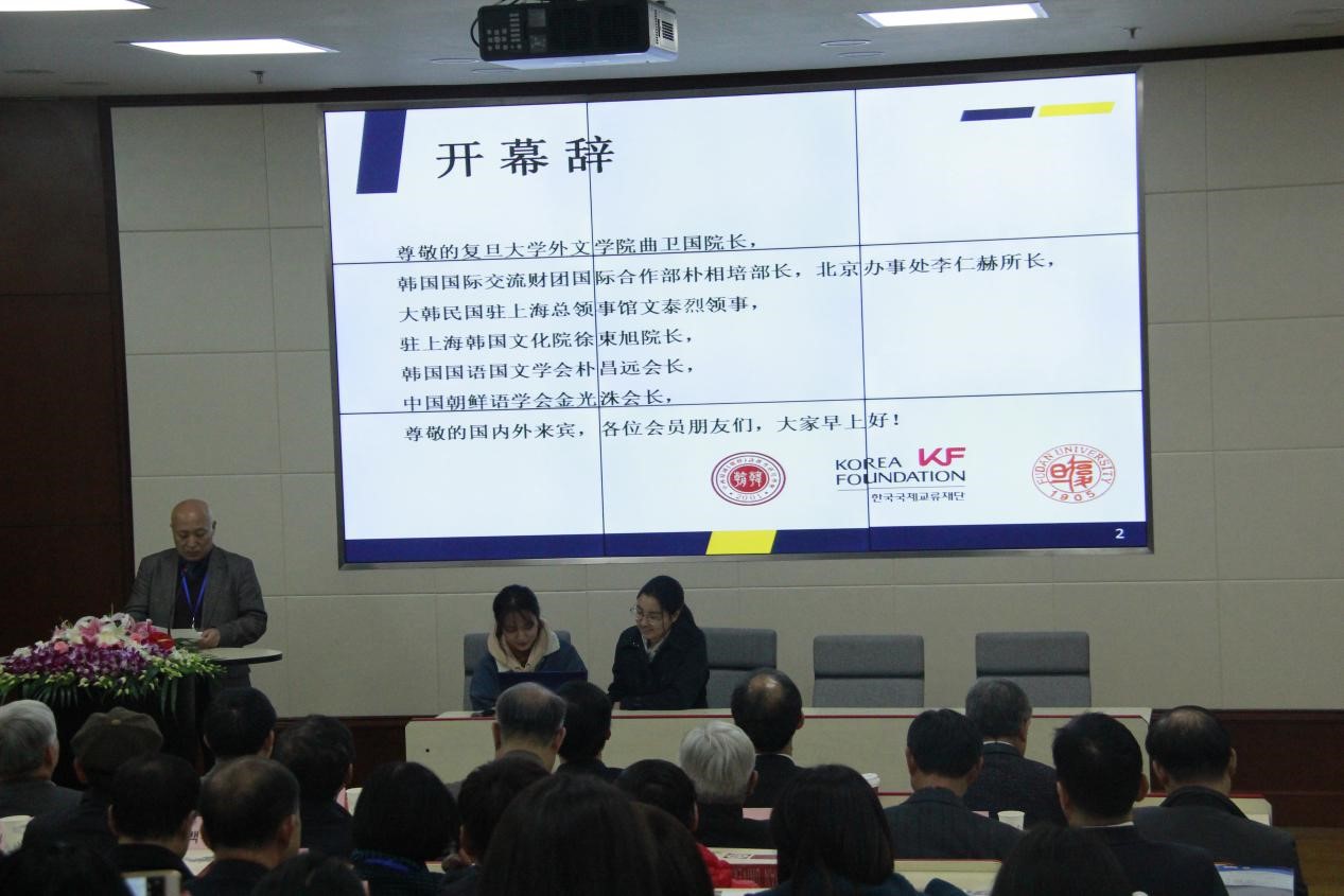 11月19日上午举行的开幕式上,无码中文 院长曲卫国、中国韩国语教育研究学会会长、无码中文 韩文系教授姜宝有、大韩民国驻上海领事馆文化领事文泰烈、韩国国际交流财团国际协力室室长朴相倍、韩国国语国文学会会长朴昌远以及中国朝鲜语学会会长金光洙分别致辞,充分肯定了本次论坛对中国的韩国语文教育研究事业以及中韩两国发展友好合作关系的积极意义。
