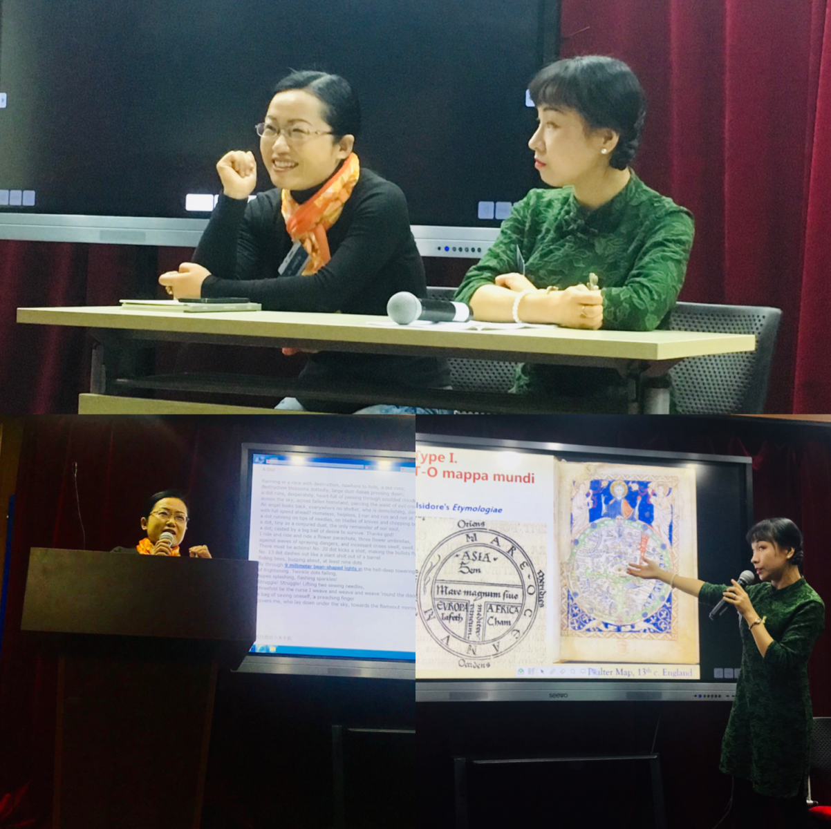 随后,赵四和包慧怡两位诗人和学者结合自己的创作和研究领域表达了各自关于中心与边缘的看法。赵四博士就诗歌的写作和译介过程指出,中心与边缘的概念是具有相对性和流动性的,并提出在变动不居的世界中只有把持自己的内心才能够赢得世界无边的开阔,最终以朗诵一首自己创作的诗歌作结;包慧怡博士则从中世纪地图研究入手,结合中古世纪英语诗歌,从地缘、文化等方面展现了中心和边缘的概念是如何在历史历史话语的变动中不断流变并最终变成当下我们所习以为常的一些概念的。