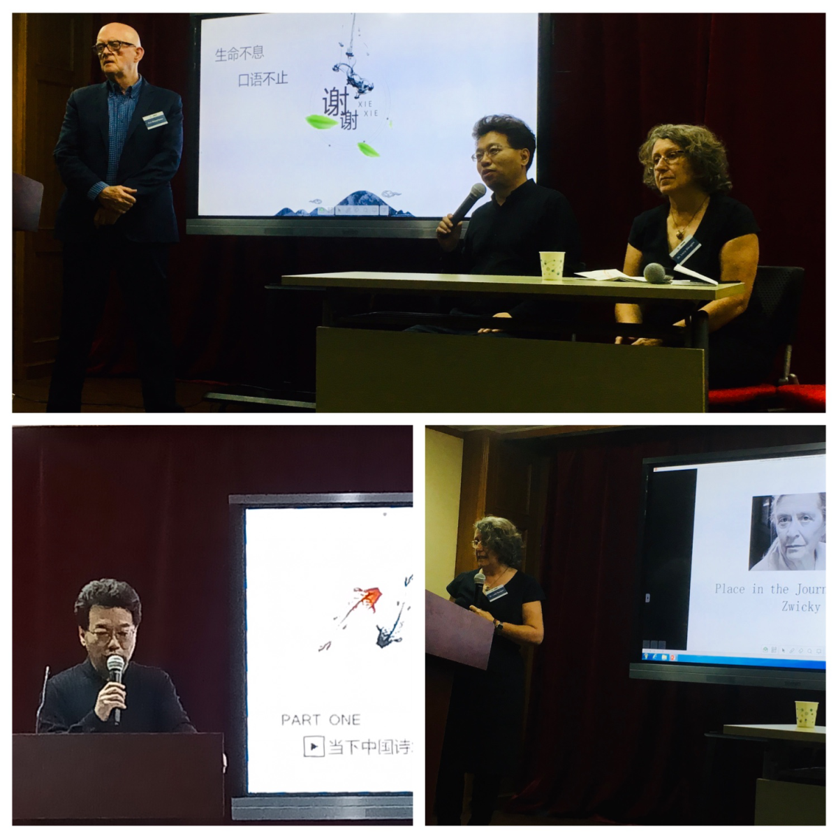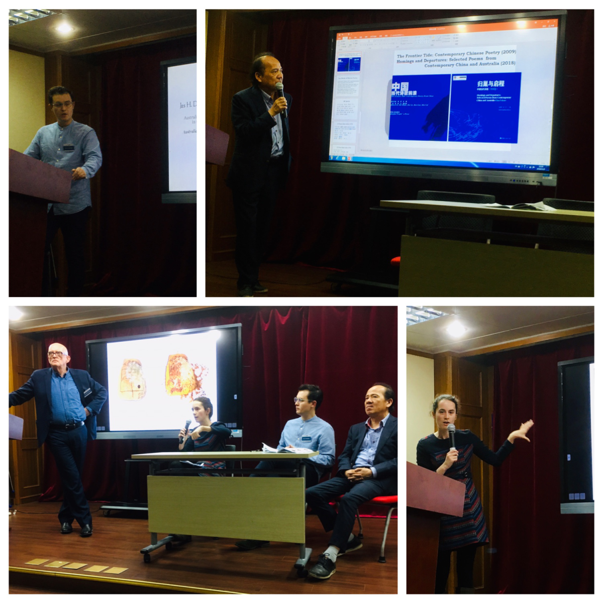 海岸老师在主题为《译写与传播:以<中国当代之歌前浪><中澳当代诗选>(中国卷)为例》中回顾了西方自“玉书”译介中国诗歌的文化传统,介绍了自己近十年来参与出版的双语诗歌项目,并提出,中外译者真诚的合作为英译中国当代诗歌提供了非常有益的示范与启示。