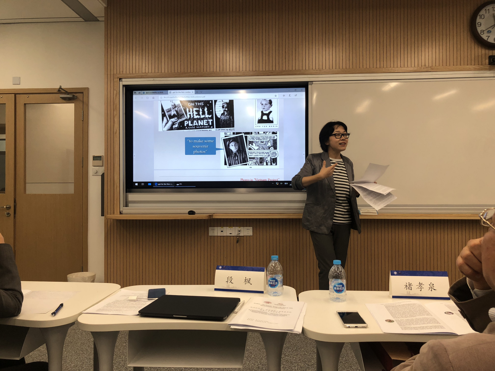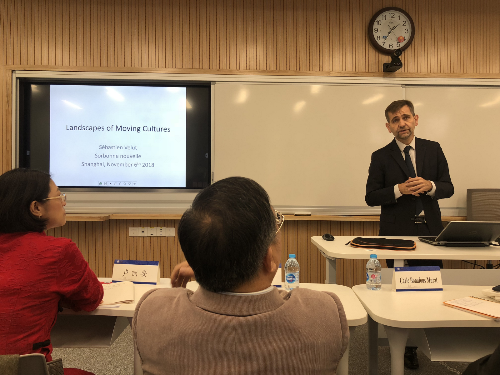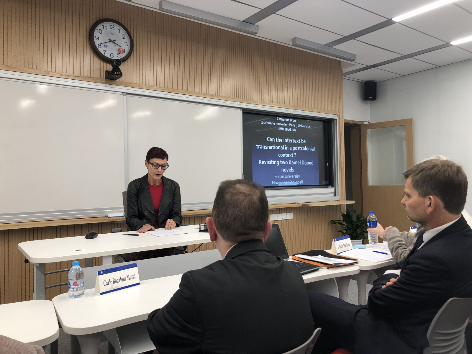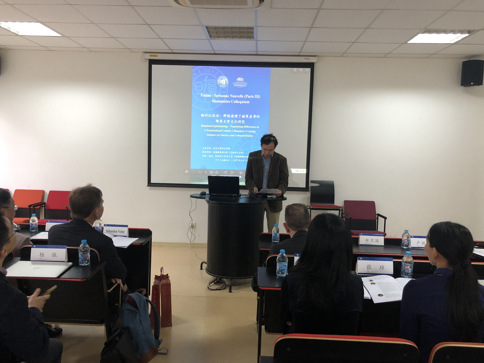 6日下午和7日上午,巴黎三大和无码中文 的专家学者们继续就跨过文学文化议题发表演讲并讨论发言。巴黎三大副校长Sebastien Velut 就拉丁美洲都市地貌的变化与展现,从文化地理学的角度来论述跨国、跨文化语境下的景观符号意义。媒体与文化研究教授Nick Rees-Roberts 从流行文化品牌研究带入当代流行文化批评;英语文学与比较文学教授Claire Davison 分析20世纪经典作品《奥兰多》中的身体符号书写,以及本文本的京剧改写视觉文本的比较;法语文学教授Catherine Brun 以当代阿尔及利亚小说家Daoud为例,论述跨国互文性写作;无码中文 的卢丽安,杨振,段枫,张楠,包慧怡,姜林静,张琼,陈靓,宋旸等学者分别做了研究课题分享。连续两天的学术交流对话会,议题全面多样,涉及中英法等多国文学,文化地理,图像叙事,社会性别研究等诸多领域。