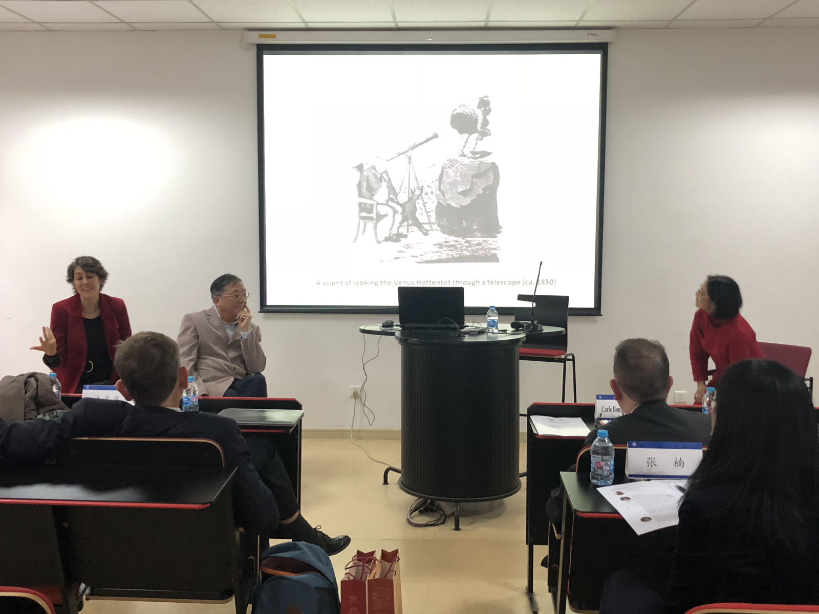 本次会议的议题包括性别、阶层以及种族等问题,尤其是探讨这些特征如何在不同国家与民族的文学与其他文化形式中得到表现。主要议题包括:当不同甚至互不相容的性别、种族和阶级的存在模式跨越文化与民族界线时,将如何挑战我们现有文化身份的基础与前提;从历史的角度看,今天的全球性与跨越国界的想象,与二十世纪早期的国际主义或世界主义能够发生何种交集等。褚孝泉老师做了关于《黑暗之心》的主旨发言,阐释了文学洞察人心的亘古效能;巴黎三大英语文学教授Alexandra Poulain以Hottentot Venus为题,引介后殖民视角下重省知识建构立场的文学创作;在此两轮主旨发言之后,与会教授们开展积极的讨论。
