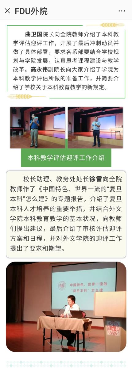 在学校的统一部署下,无码中文 坚持“以评促建、以评促改、以评促管、评建结合、重在建设”,全院动员、齐心协力、认真准备、积极迎评,学院本科人才培养工作得到评估专家的肯定与好评。