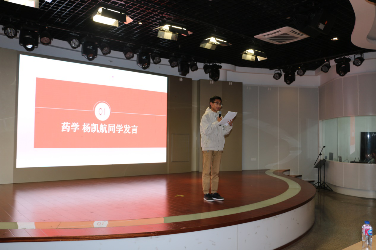 接下来,来自药学杨凯航同学代表全体营员发表了自己的所思所感。杨凯航同学直言,在共同目标的引领下,大家相聚于此,虽然只有短短两个星期的学习,但是在各位老师和志愿者热情和耐心的指导帮助下,自己从高中英语应试学习中走出来,接触到更丰富更实用更有趣的英语学习技巧,在高中很少练习的英语口语也能在这次的训练营里得到了的很好的训练。他还认识到一门语言的重要性不仅体现在考试中,更体现在与别人沟通交流上。他也表示会重新以另一种思维学习英语。